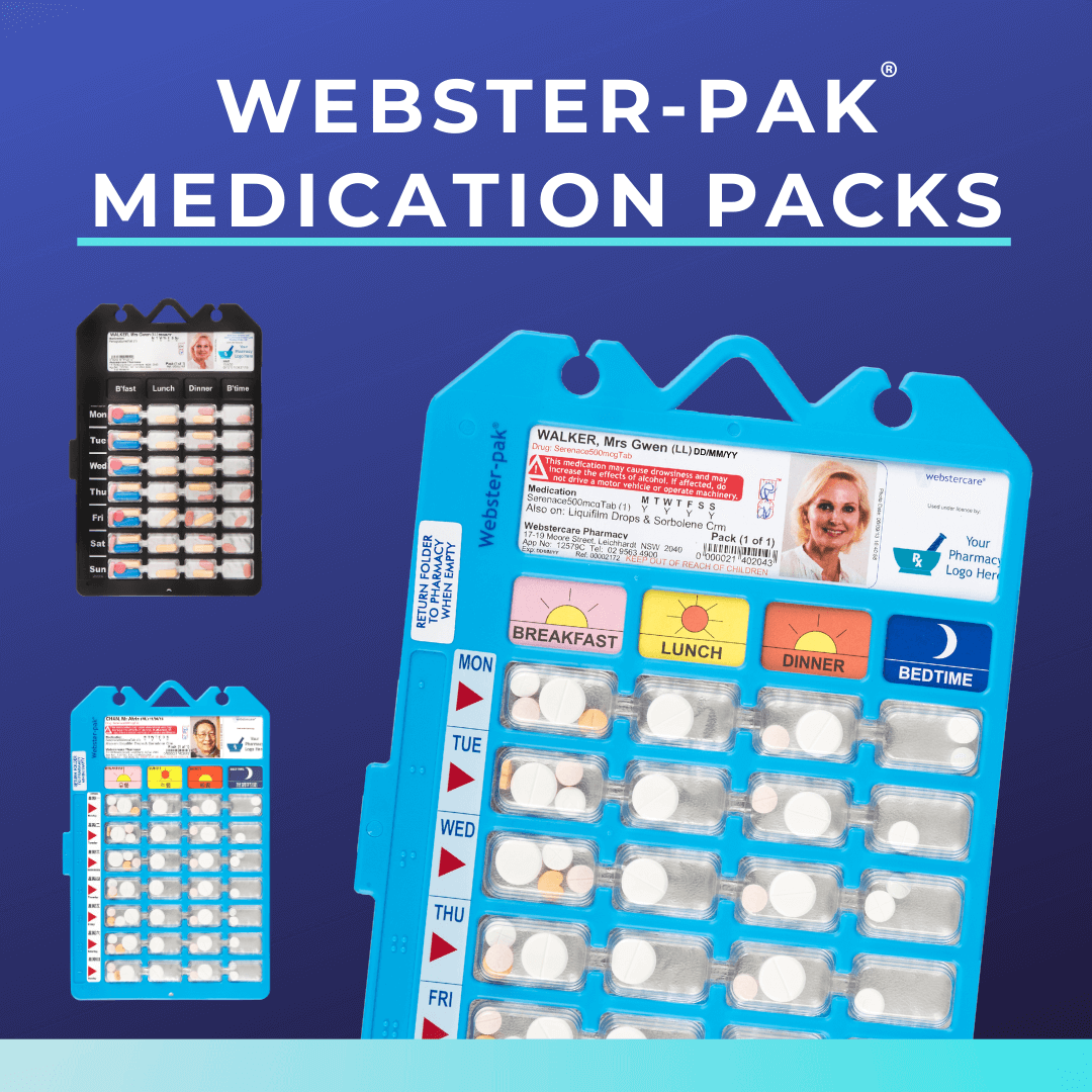 Worry less with a Webster-pak® medication pack! The Webster-pak helps those taking medication to take the right dose at the right time and manage complex medication regimes.Webster-pak®